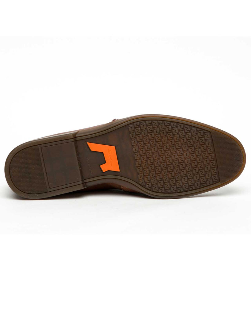 A casual take on the menswear icon, this loafer is characterized by a wide fit for exceptional comfort and a practical rubber sole, elevated with a contrast tread for a flash of Santoni's iconic orange. Crafted from ultra-luxurious deerskin leather, its sophisticated silhouette features classic raised apron stitching and sleek angular edges. Made in Italy.