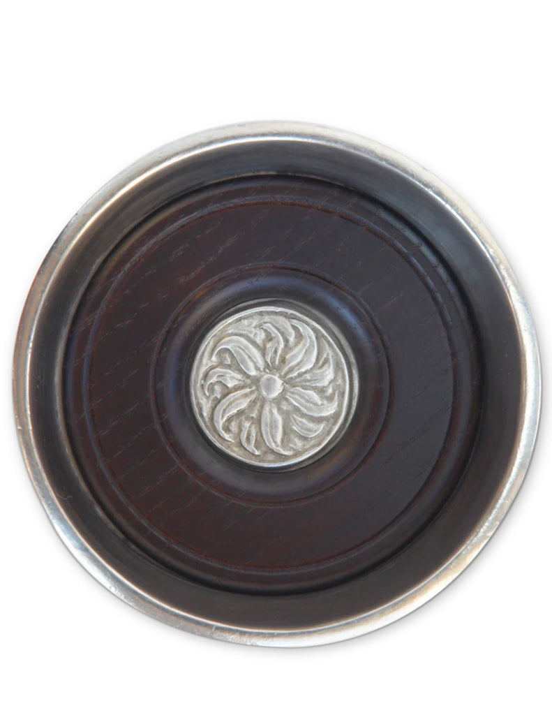 With a removable wood insert, this handsome all-pewter bottle coaster gives protecting your fine linens and surfaces a stylish upgrade. We also love it for serving chilled mineral waters and artisanal olive oils.