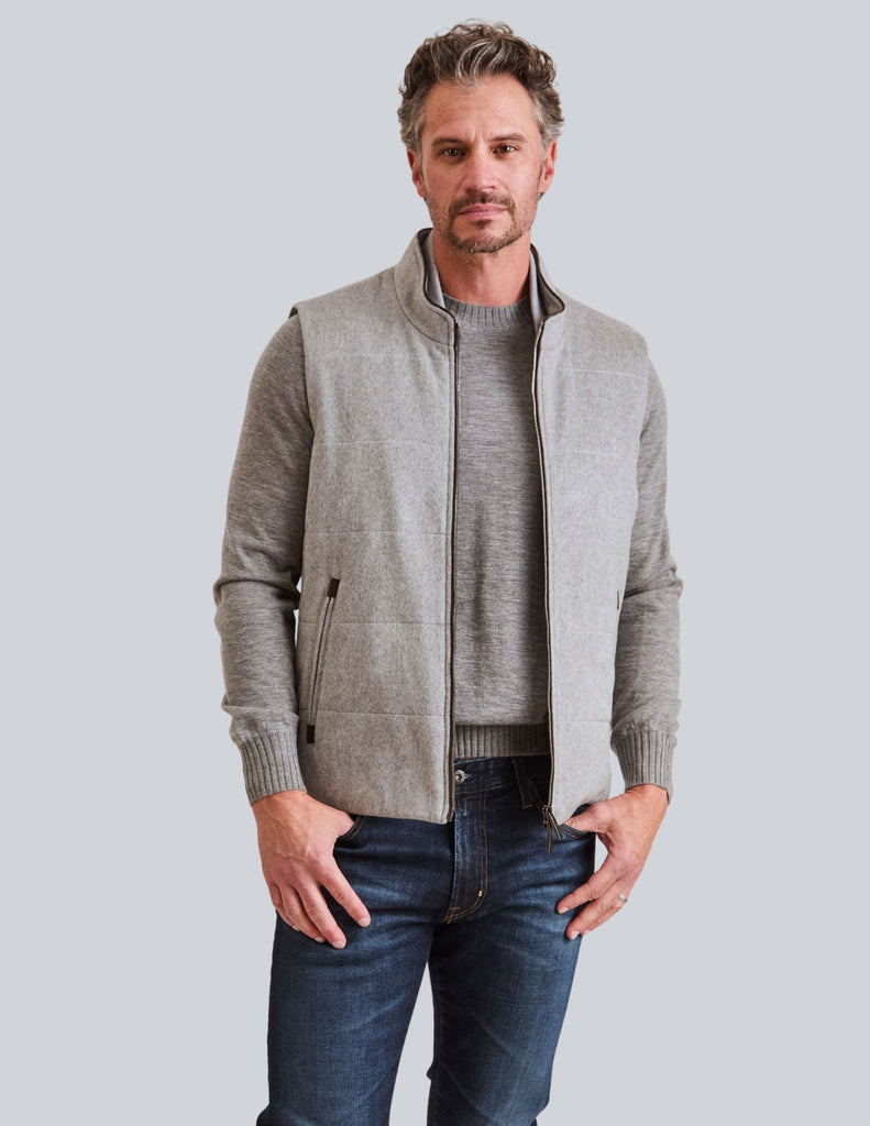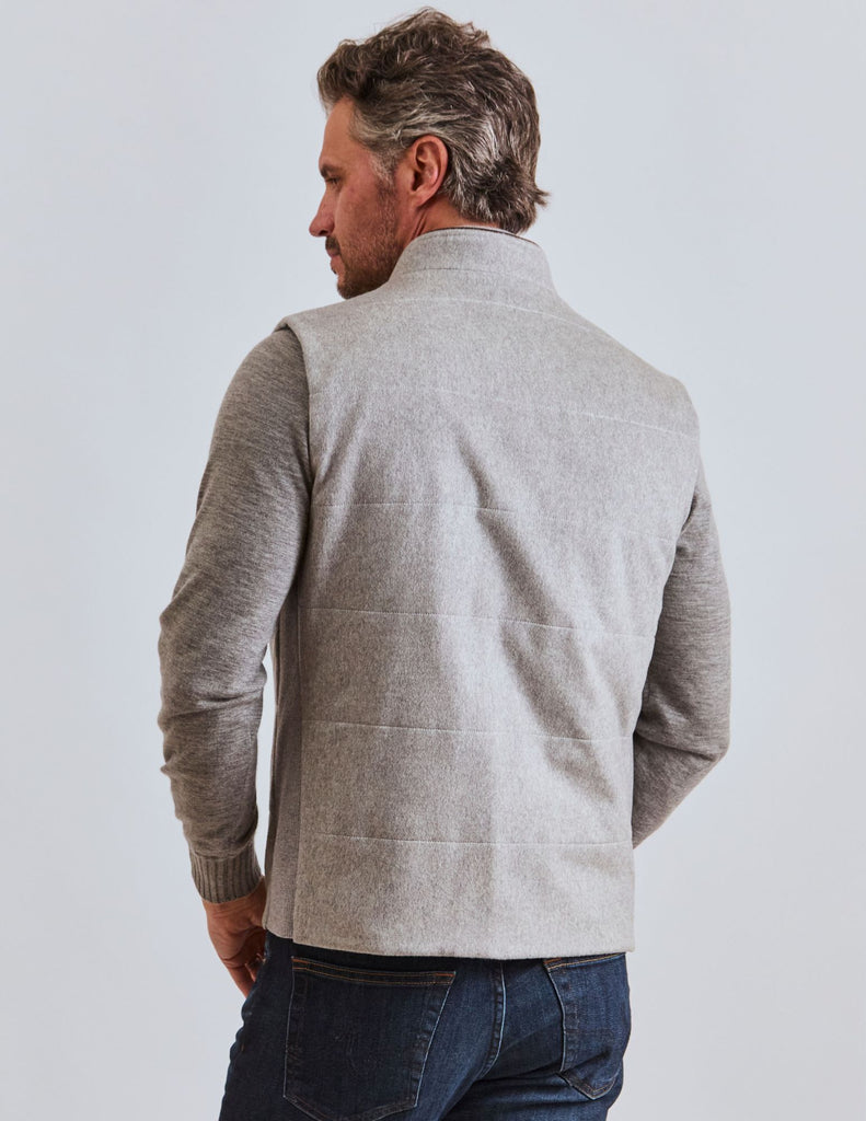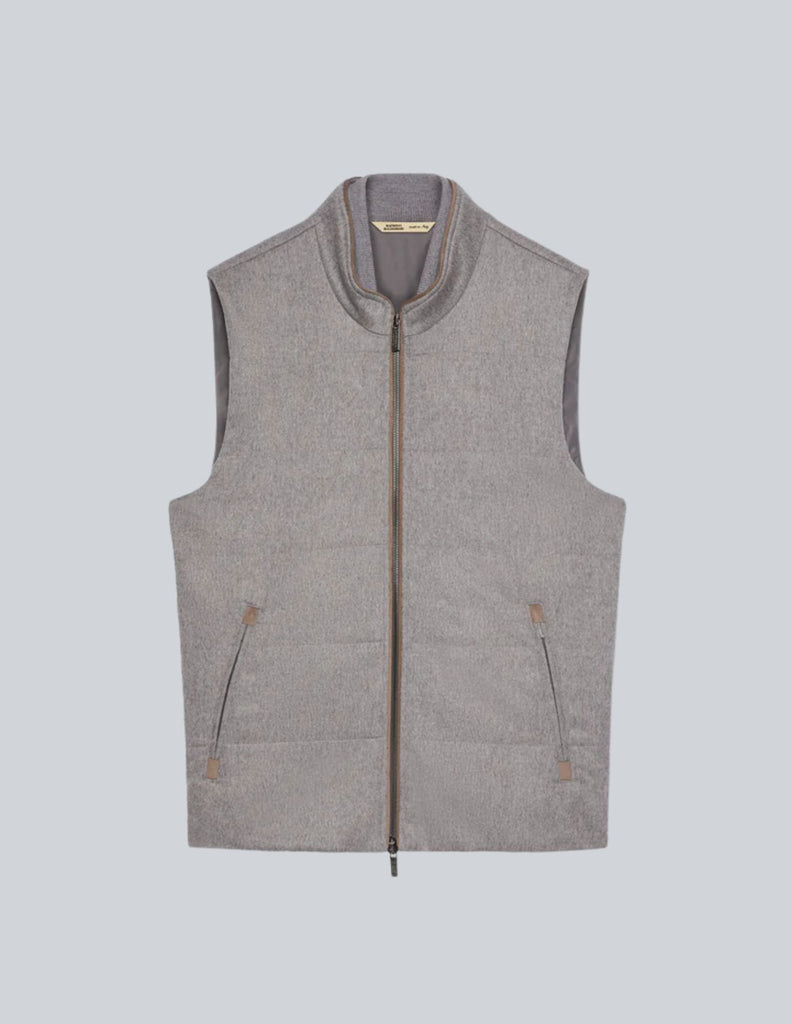 Iconic Arena cashmere vest with Thermore padding and knitted inserts on the side that make the garment extremely comfortable and perfect for the rigors of modern life.