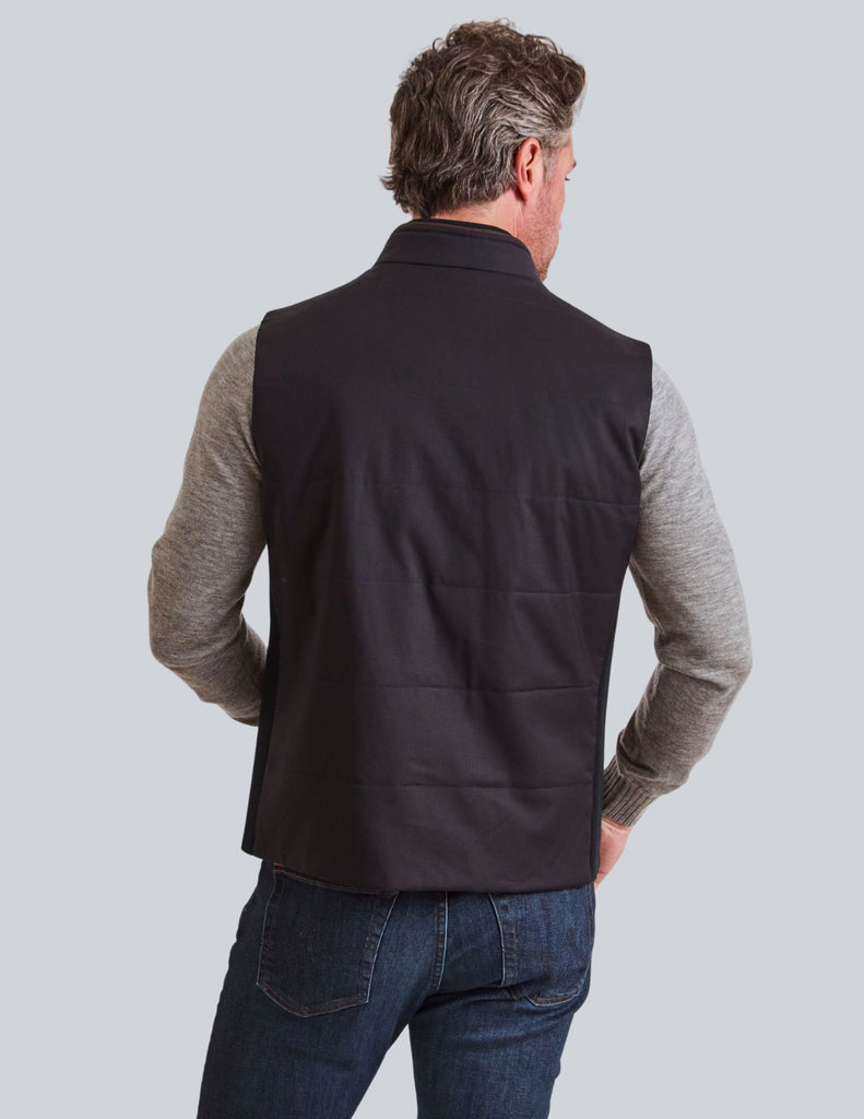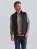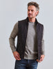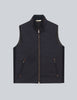 Iconic padded sleeveless vest with knitted side inserts that make the garment comfortable and perfect for urban life. Double zip, knitted inner collar and alcantara details.