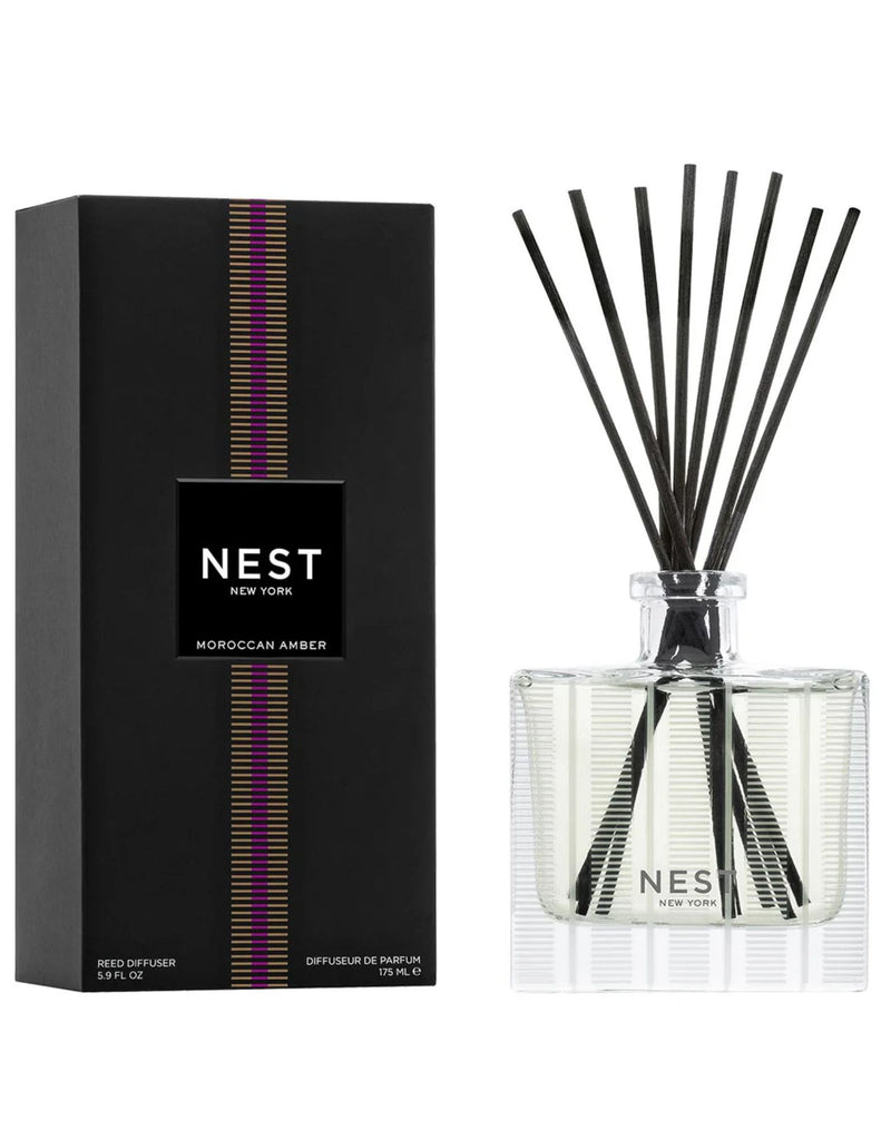 Create an exotic atmosphere with this Reed Diffuser featuring Moroccan amber, sweet patchouli, heliotrope, and bergamot with a hint of eucalyptus.