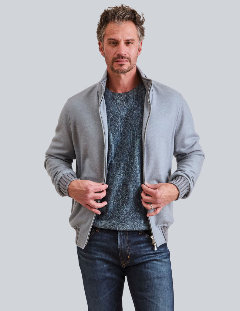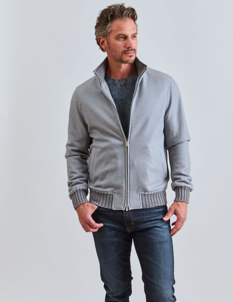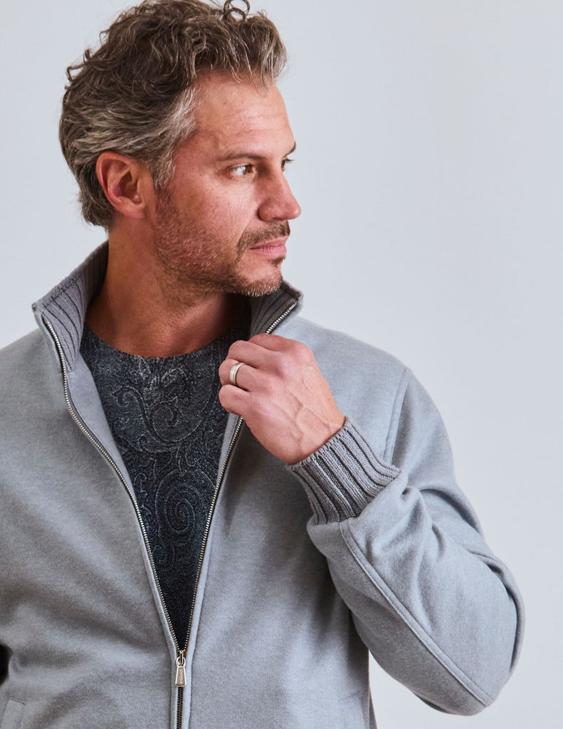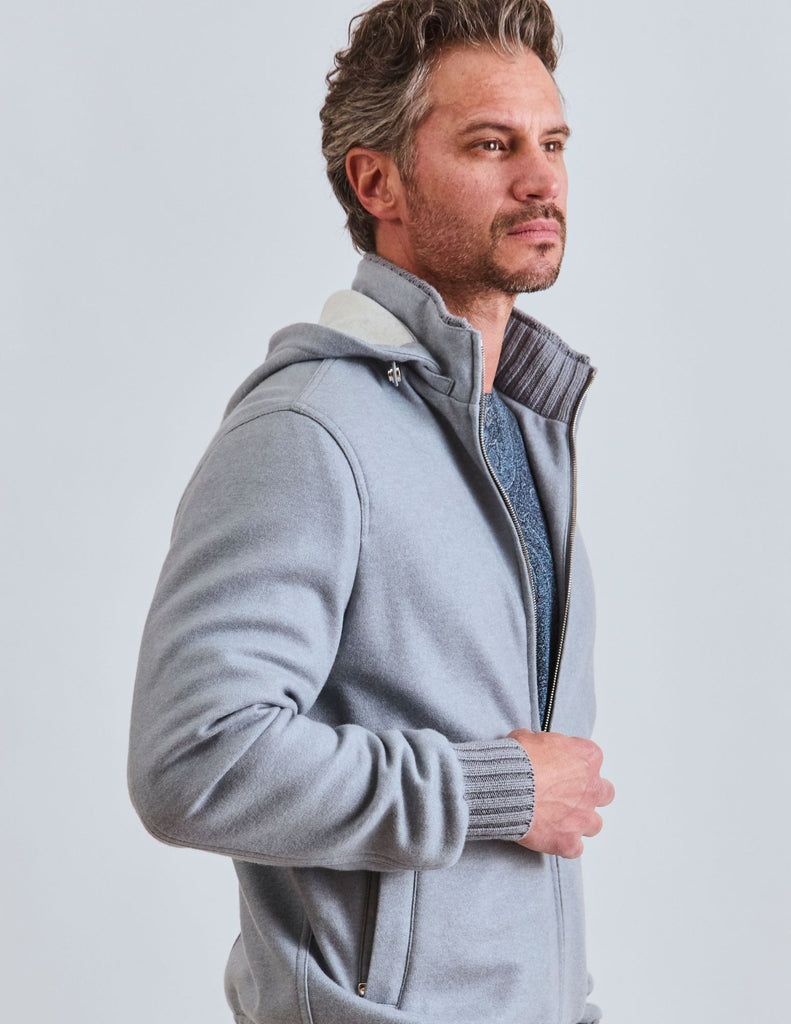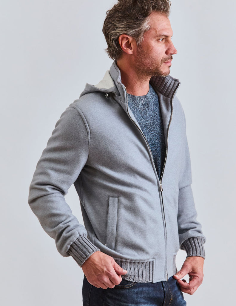 The softness of cashmere provides comfort even in cool weather. The model from Mandelli is complemented by a voluminous hood and a convenient zip fastener. The neutral light blue color is easy to combine with everyday wardrobe. Elastic cuffs and waistband securely fix the fit without restricting movement. Practical side pockets are closed with flaps - convenient for small items. Ideal for the urban rhythm and short trips. A universal option for those who value simplicity and premium quality.