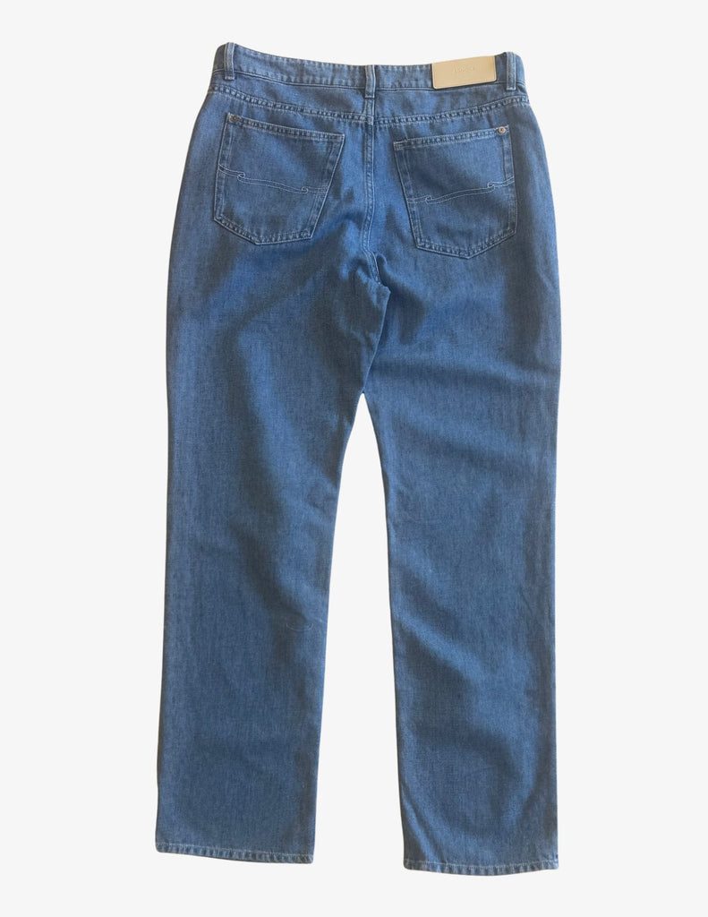 This straight-leg jean is crafted from a cotton linen blend and is constructed in a classic five-pocket silhouette.
