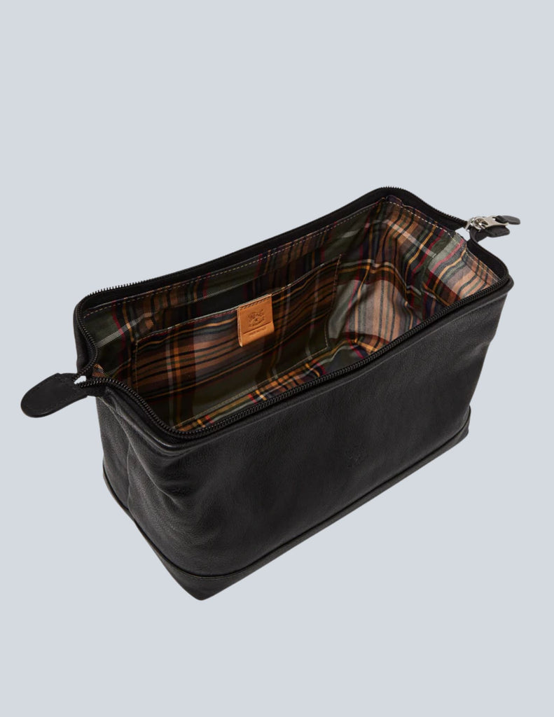 This dopp kit is made from vegetable-tanned cowhide leather and features a wide opening with a waterproof canvas lining and a top zip closure. Made in Florence by the best artisans in the world - produced exclusively by master craftsmen.Natural, soft and resistant to wear, vegetable-tanned leathers are processed using an ancient process that uses tannin, a 100% natural powder extracted from the bark of chestnut and quebracho trees.