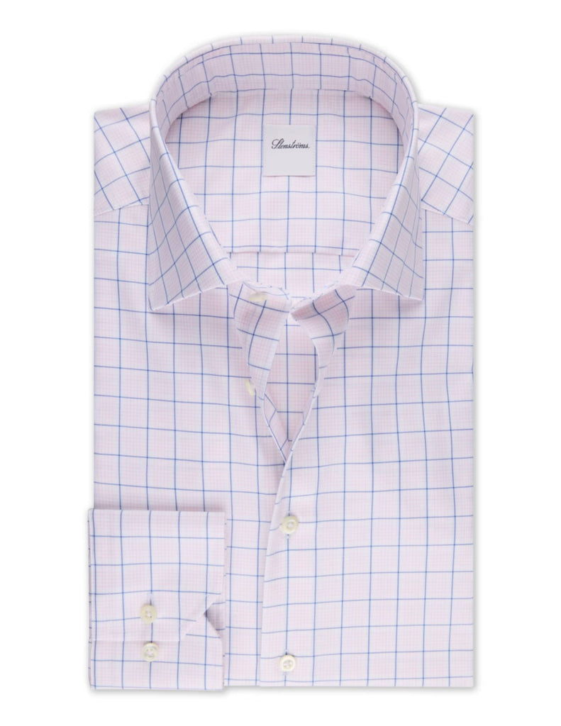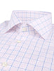 This checked twill shirt is made of twofold cotton and is detailed with mother of pearl buttons, single cuffs and a cut away collar.