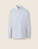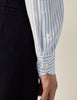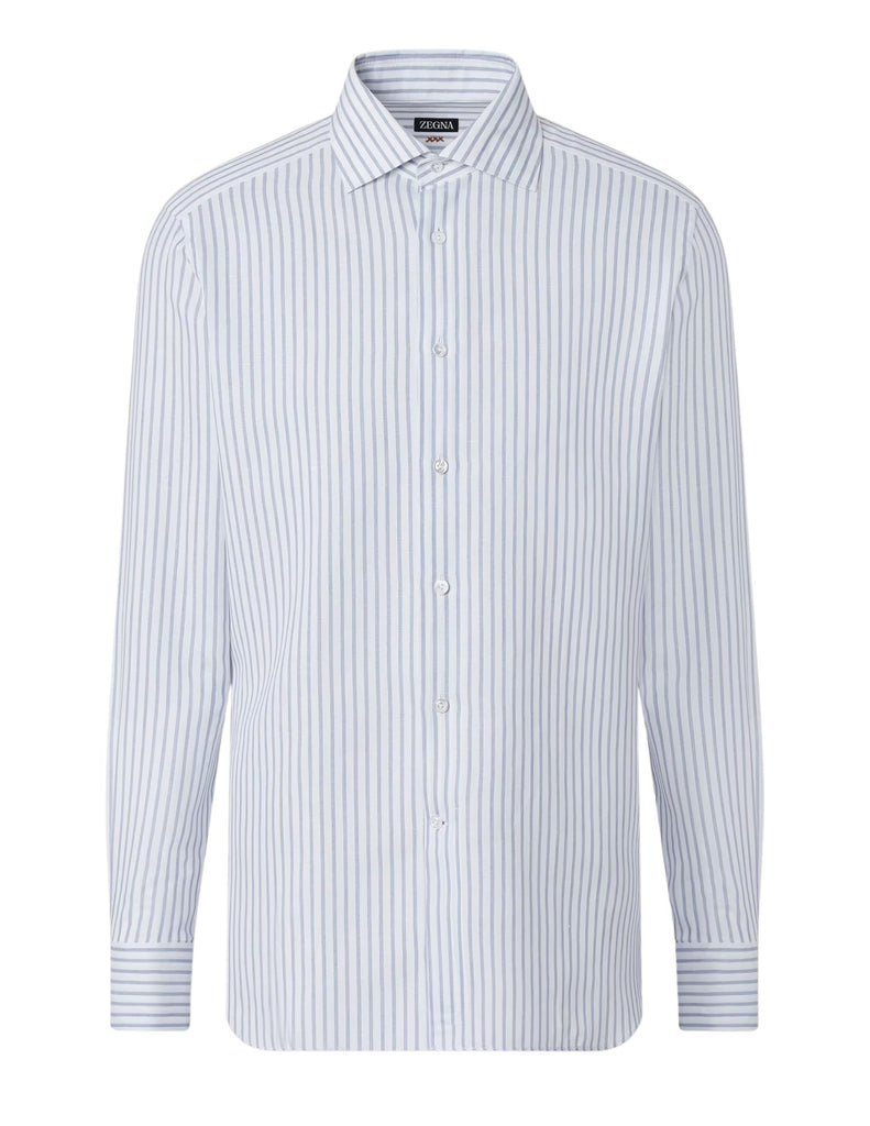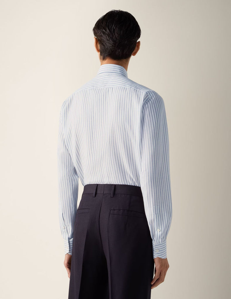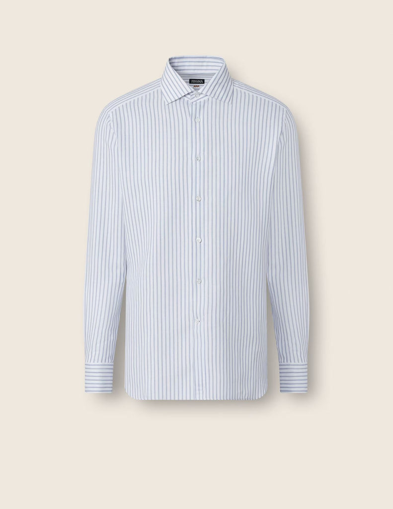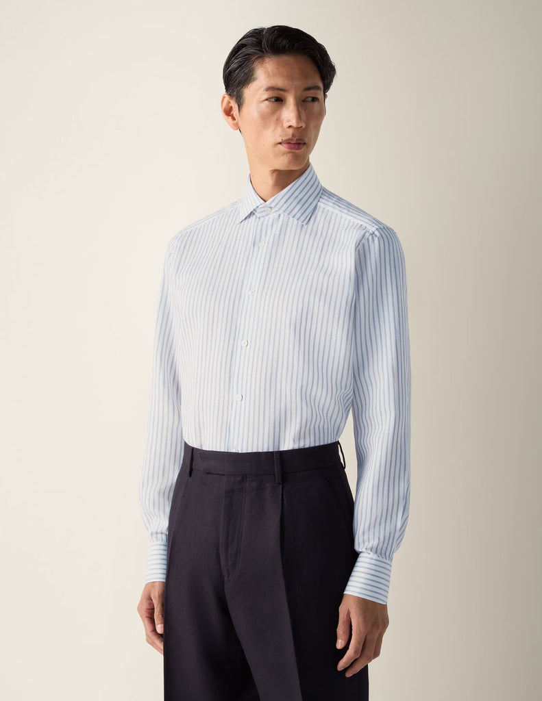 A sumptuously soft silk, linen and cotton blend expresses ZEGNA's vision of luxury tailoring with this elegant long-sleeve shirt, standing out in dark indigo blue and white stripes. Its regular-fit silhouette features a versatile semi-spread collar and standard cuffs.