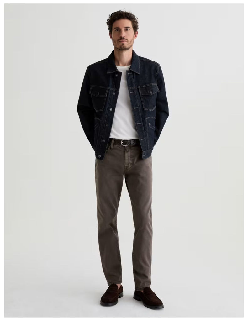 The Tellis modern slim jean is designed with a fitted upper block and tapered leg opening that's slim but not too skinny. Crafted from AG Cloud Soft Denim™, Hyper Soft Bull Denim, 8.7 Oz. for versatile style and comfort. Shown here in 7 years sulfur brown slate.