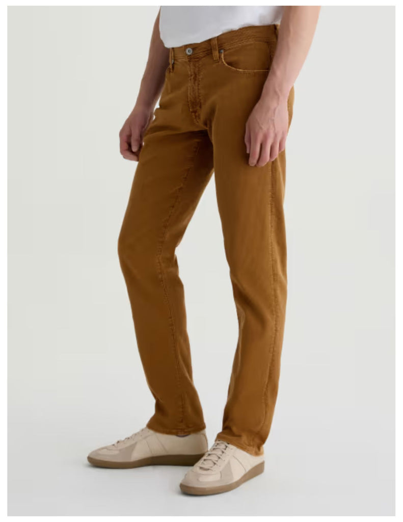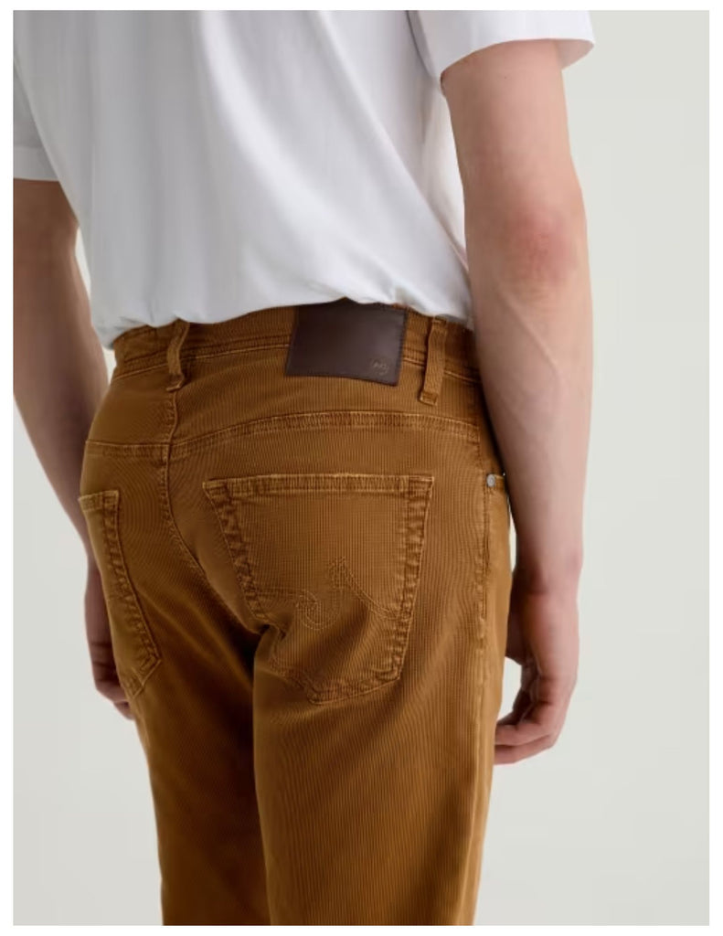 Tellis Modern Slim Jean for men features a burnt orange hue, fitted upper block, and tapered leg opening. This men’s pant is designed in an Italian Bedford Cord, this fabric features subtle wales on the surface and a piqué weave on the reverse, offering a unique balance of softness and structure to the pant.
