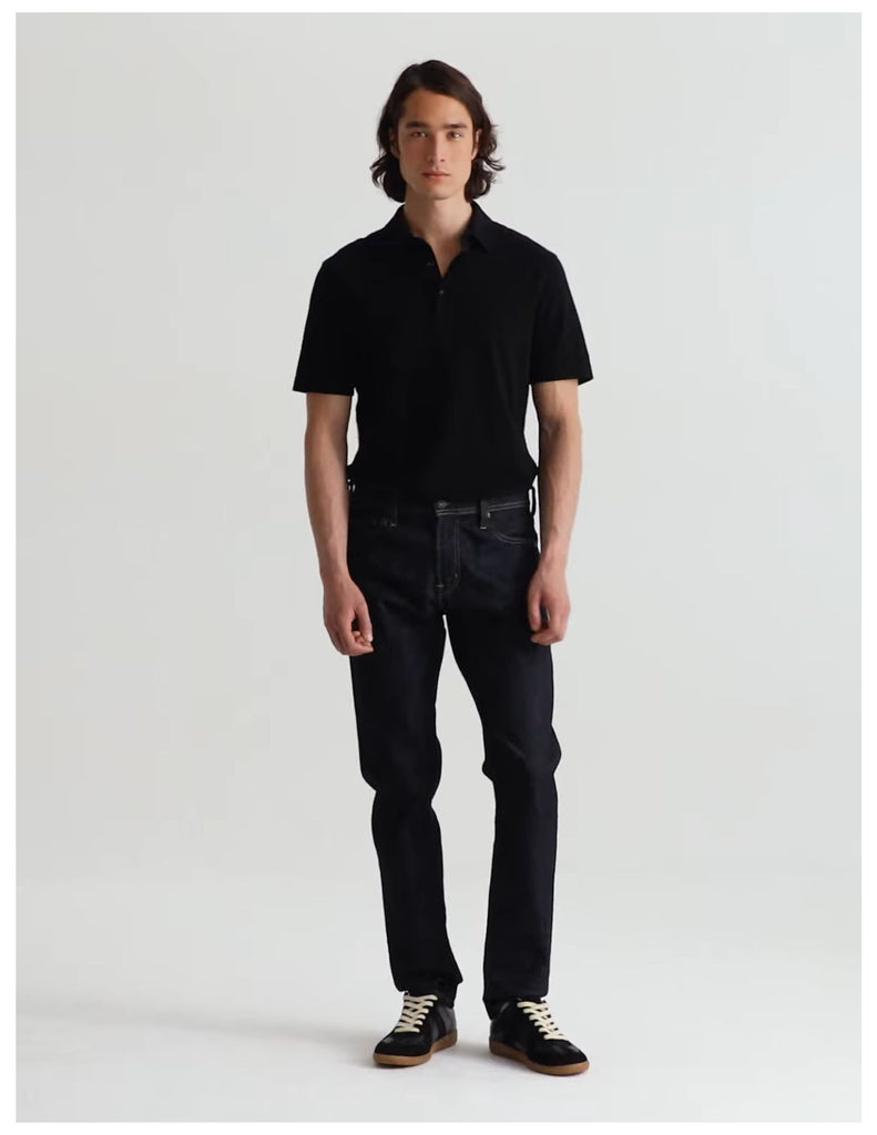 The Tellis modern slim jean is designed with a fitted upper block and tapered leg opening that's slim but not too skinny. Engineered with a 14 oz. heavyweight 3x1 super stretch indigo denim, it delivers the all-day ease and recovery of performance wear while maintaining the authentic look of rigid denim. Crafted from premium Kaihara Japanese denim, this fabric features a deep red-cast indigo and refined vertical slub texture. Shown here in Colfax, the resin rinse wash treatment offers the authentic look of raw denim.