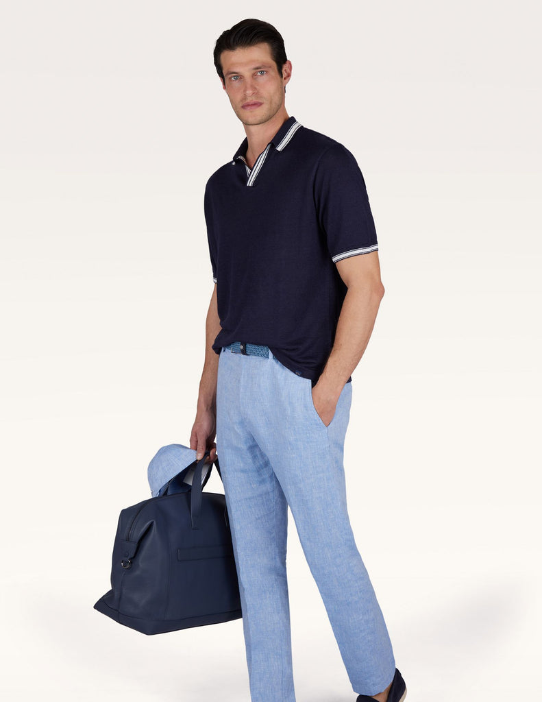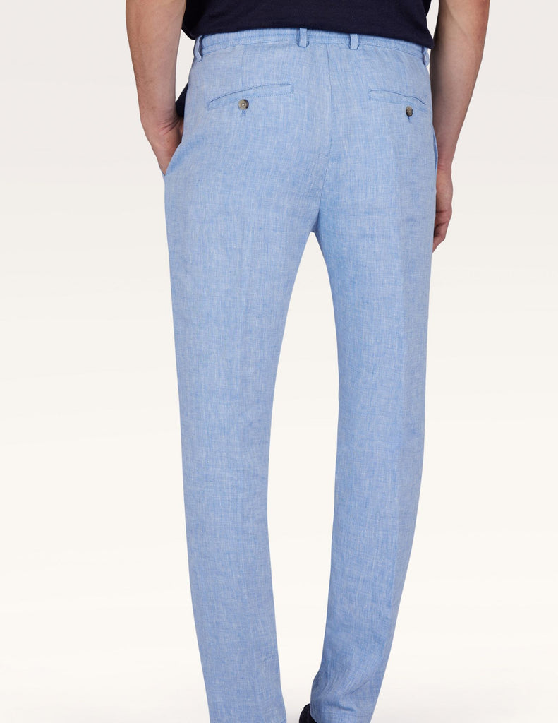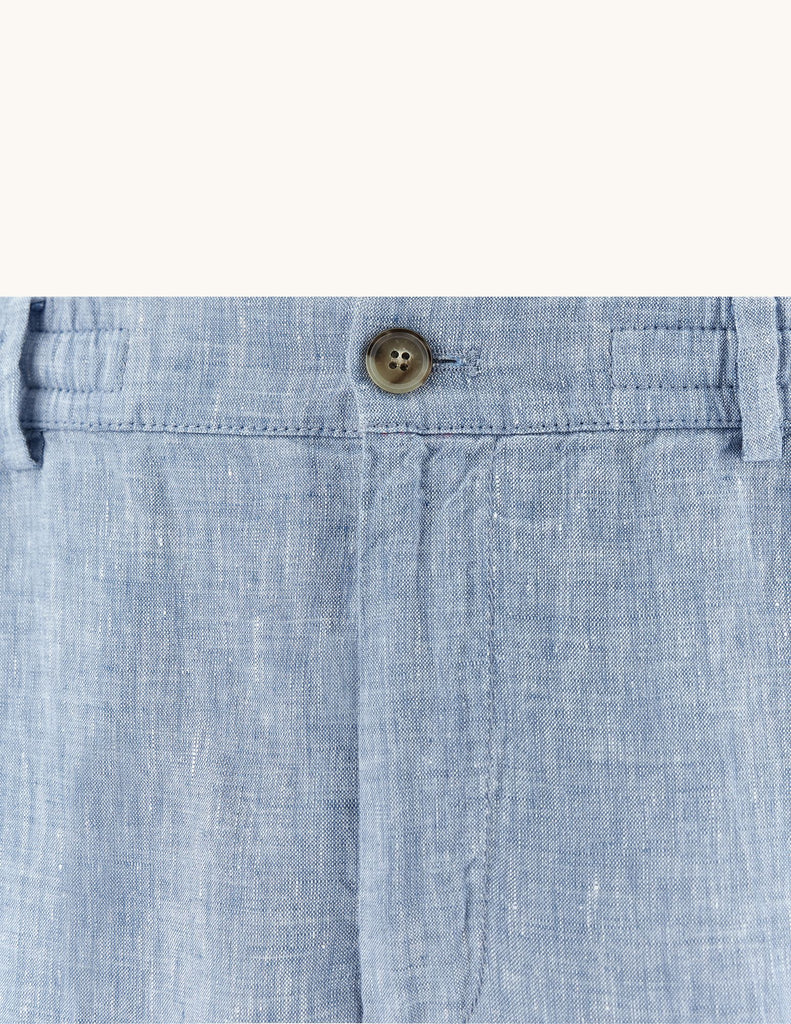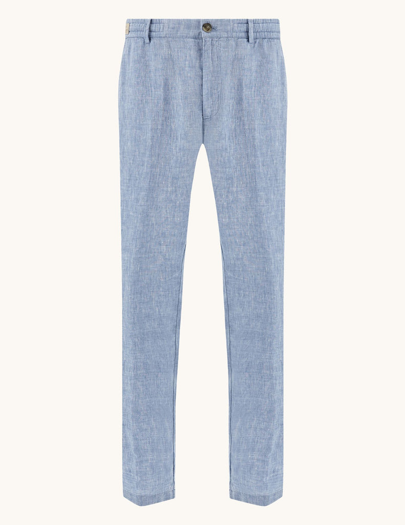 The perfect balance of functional attitude and aesthetic flair. Featuring an elasticated waist with inner drawstring, these chinos are crafted from pure linen that’s been specially treated for an even softer feel. Their clean design with straight leg that tapers in lightly towards the ankle makes them a versatile choice for endless occasions, while pockets on the sides and back are perfect for keeping small essentials at hand.