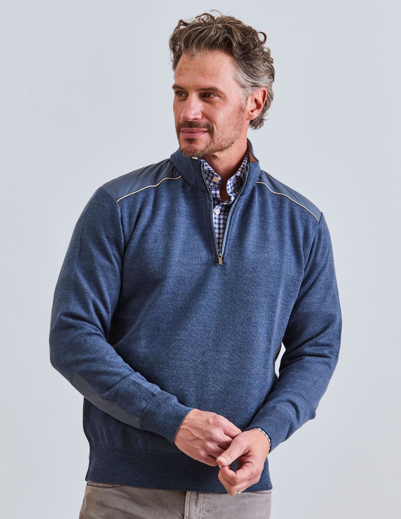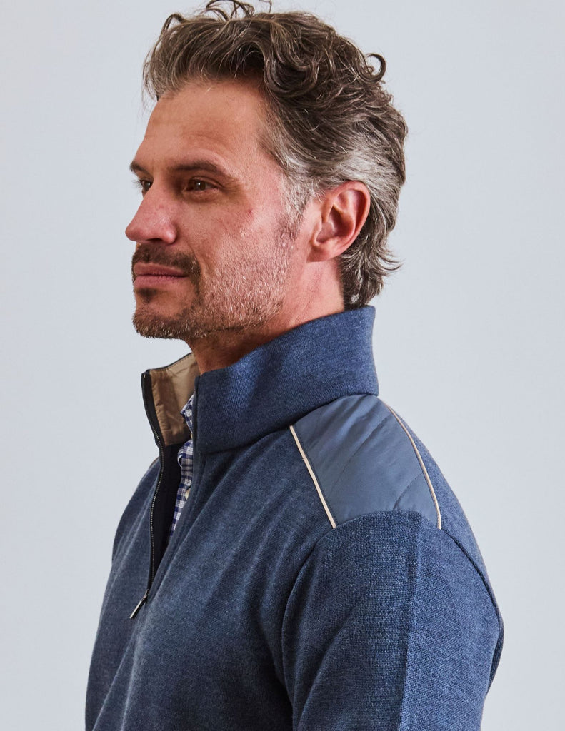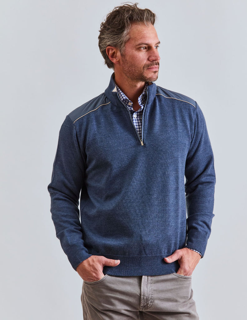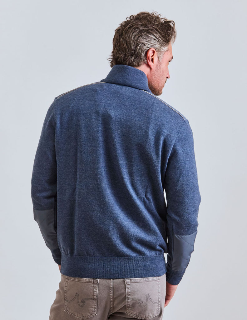 This sweater is knitted from wool and treated with Soft Cool Touch technology: the yarn is cold-pressed to create a super-compact yet flexible texture that’s resistant to pilling and makes water slide right off the surface. Typhoon Platinum details add a unique touch: a high-performance fabric with an ultra-luxurious tactile feel. Perfect over a shirt or T-shirt, it boasts a timeless design with a high neck, half zip and ribbed trims for a well-defined silhouette.