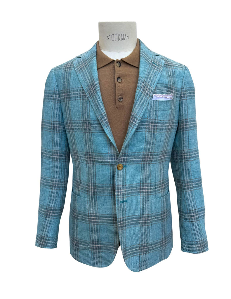 Aqua and Tan Windowpane Sportcoat