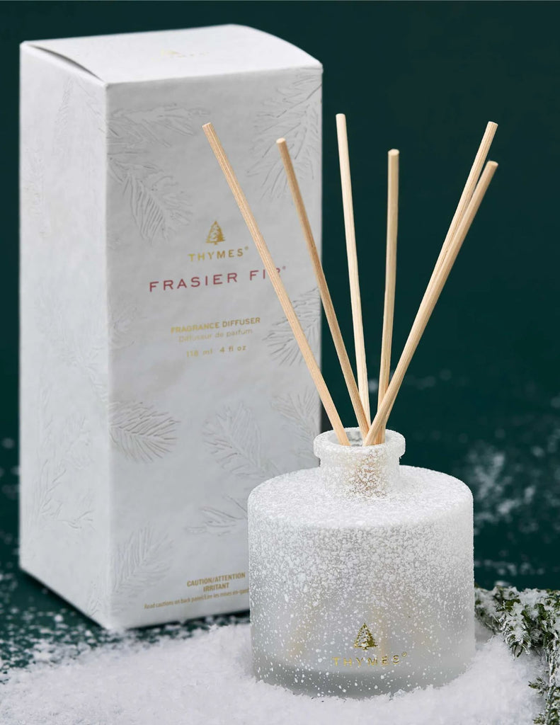 The Flocked Petite Reed Diffuser is the perfect flameless format to elevate and compliment your home décor. A carefree way to spread the fragrance of Frasier Fir around the clock, the Rattan reeds absorb the oil, releasing a fresh ambiance.