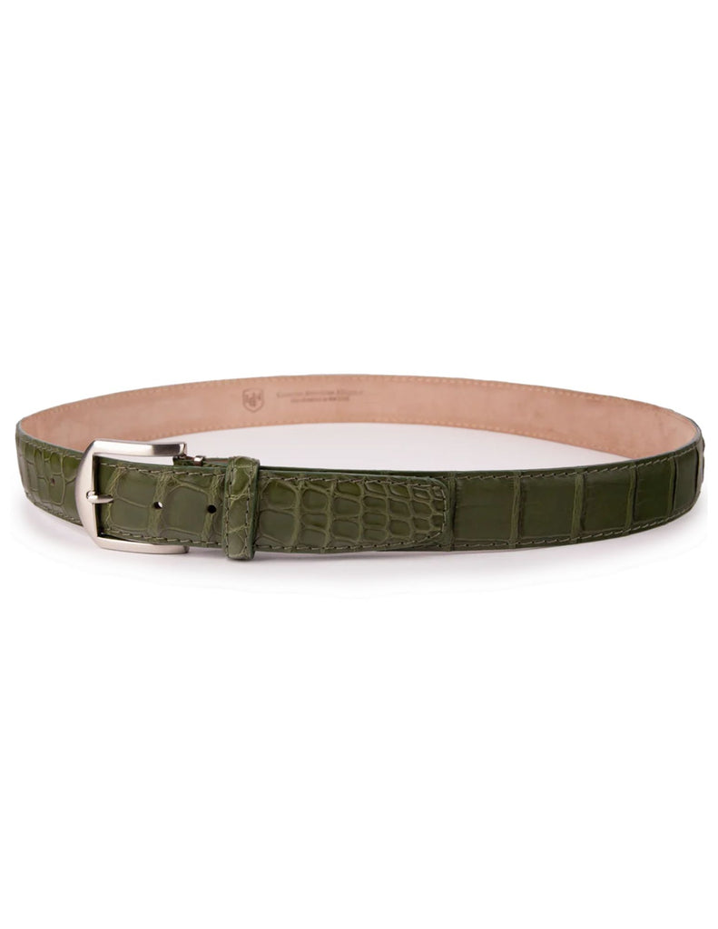 Their 40 millimeter American Alligator belt is designed for today’s five pocket slacks as well as your favorite jeans. Wider belt loops demand wider belts.