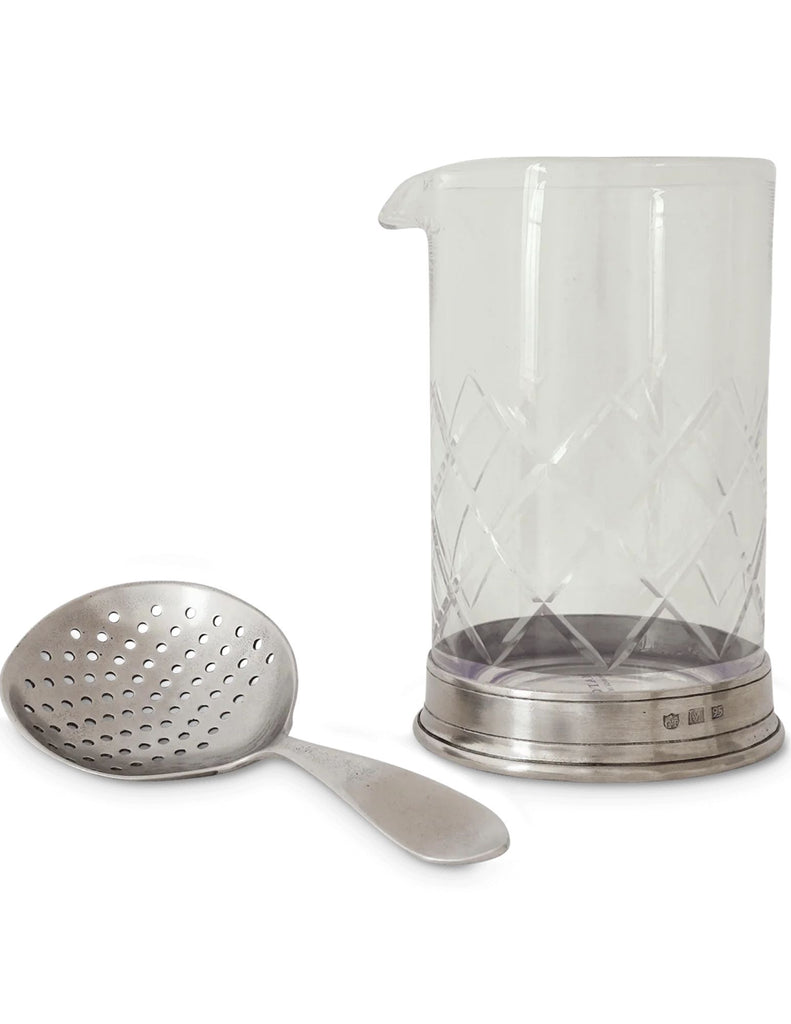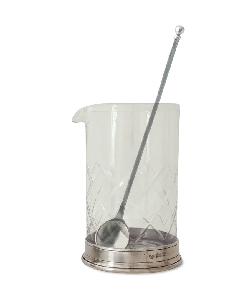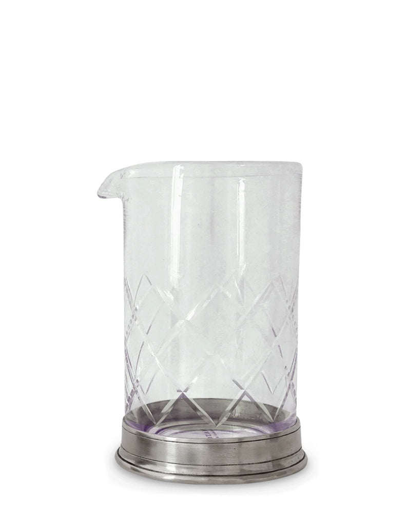 The mixing glass is a stylish upgrade for your favorite mixologist. A distinctive blend of Italian pewter and lead-free European crystal detailed with an elegant cutwork design to ensure a slip-free grip while pouring. A gorgeous addition to the bar top.