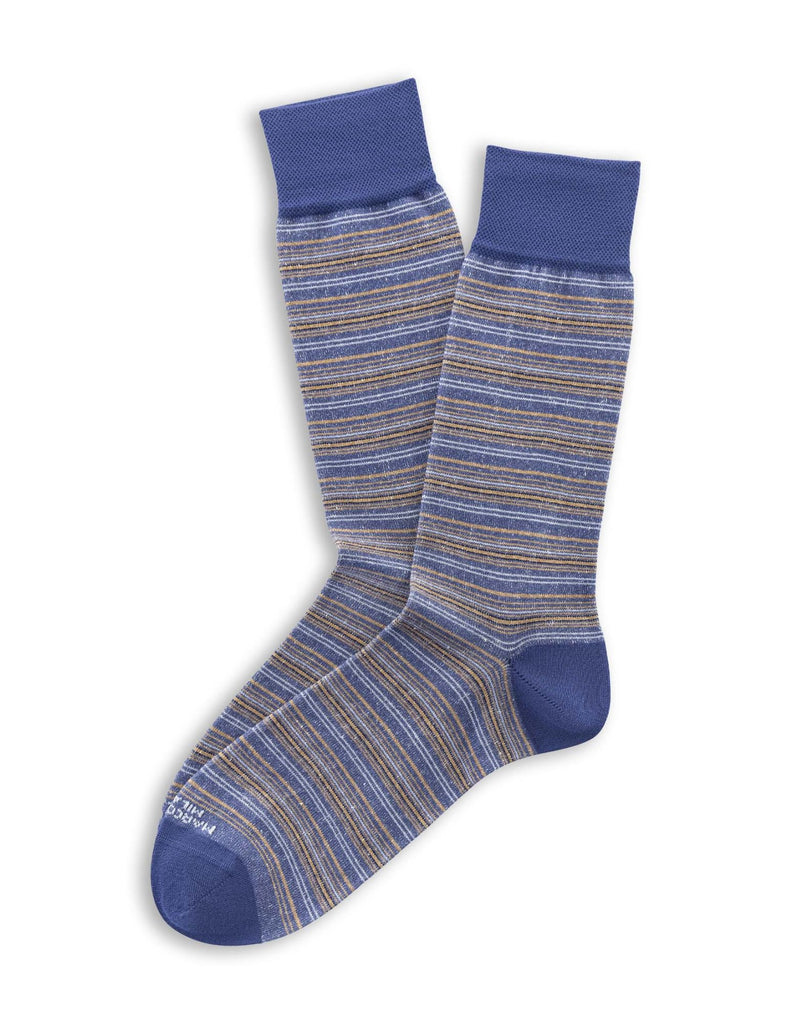 These socks are made from linen, a fiber grown along the coasts of the North Sea between France and the Netherlands. Linen is the most durable of natural fibers and wraps the foot in comfortable freshness. Blended with Pima Cotton and thanks to a series of handcrafted processes, these socks are soft on the skin and are highly durable.