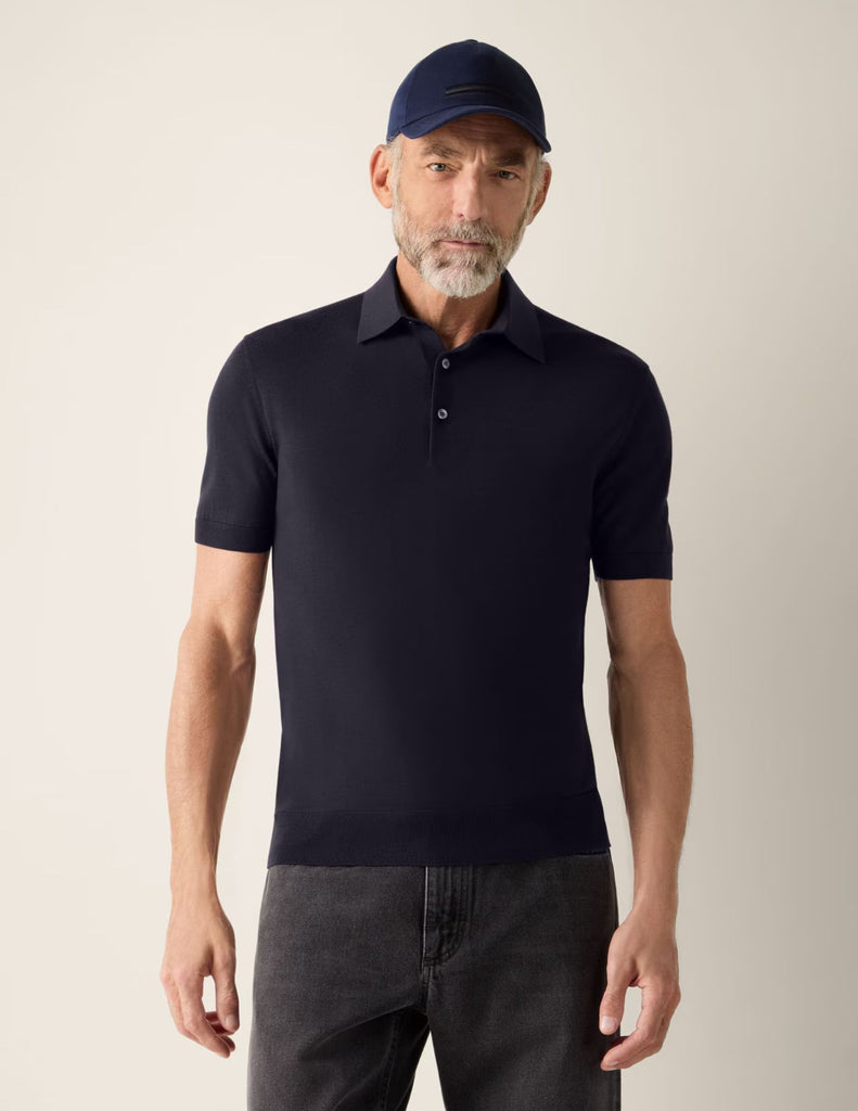 Refined details elevate a timeless off-duty silhouette with this 15milmil15 wool polo shirt, featuring a tubular hem and folded cuffs. Knit with an understated plain stitch, it's presented in ZEGNA's beautiful Notte Oasi colorway.