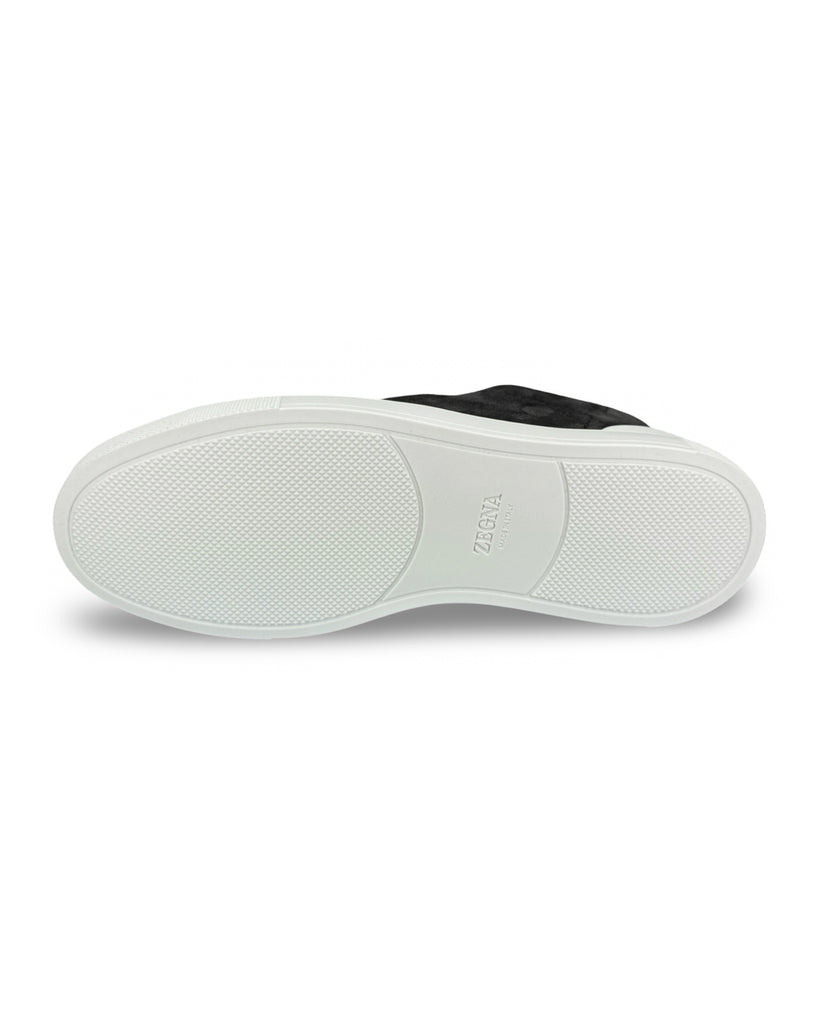 Soft-touch suede enhances the casual charm of the dark grey low top Triple Stitch™ sneakers. Lightweight and flexible, this refined design is a luxurious take on casual footwear. The sneakers slip on easily thanks to the collection's iconic, triple-crossed elastics, which evoke the hand-stitching of classic leather shoes.