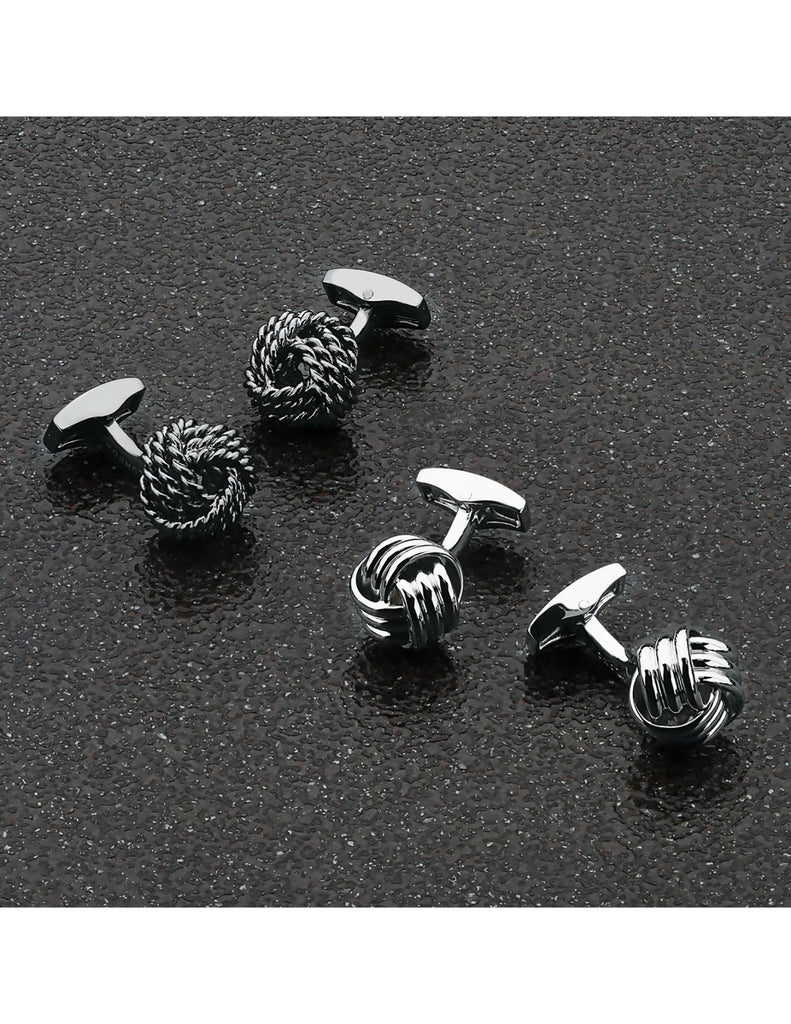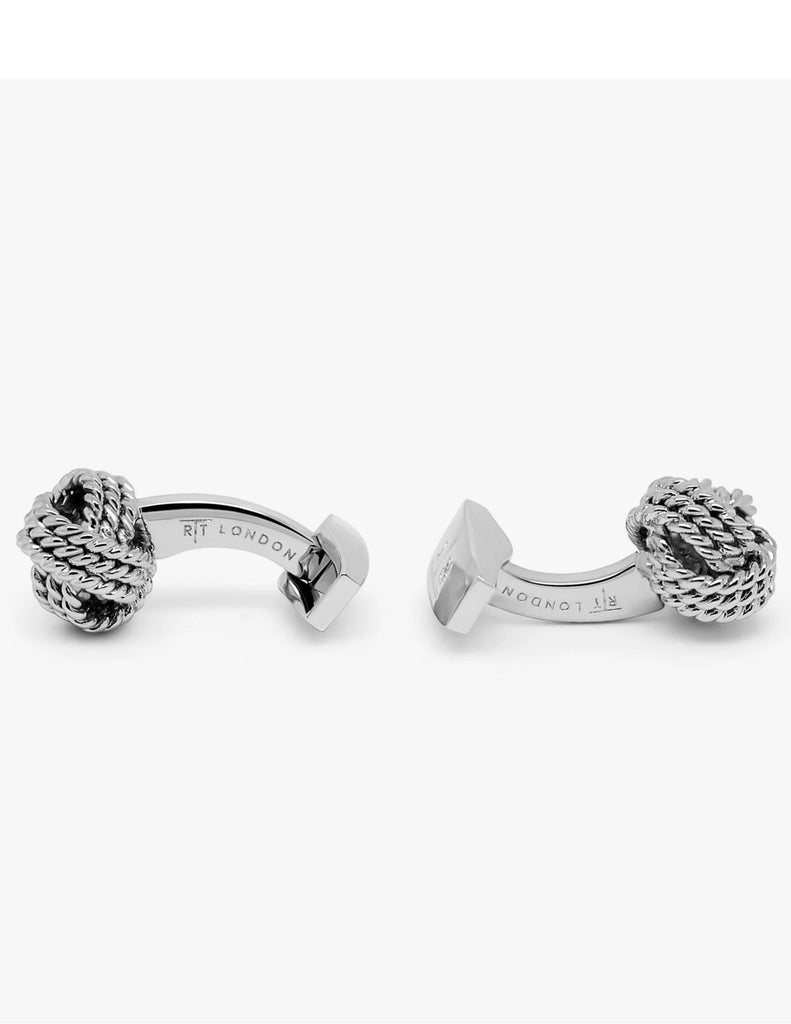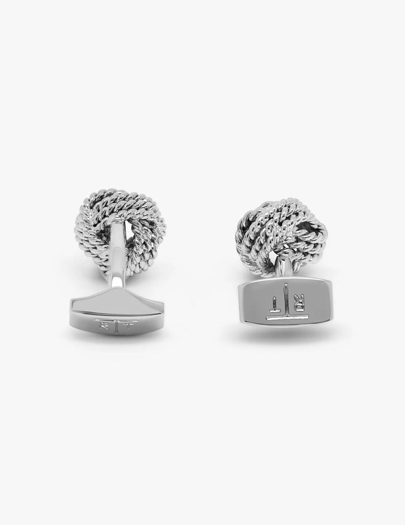 Their traditional braided knots use polished, clean lines and fluid shapes to create a collection perfect for those who favour a minimalistic style. A high-shine finish is added with our rhodium plated finish on the base metal. Complete the look with our matching cable knot tie clip. The face of each cufflink measures 13mm length x 13mm height x 9mm width.